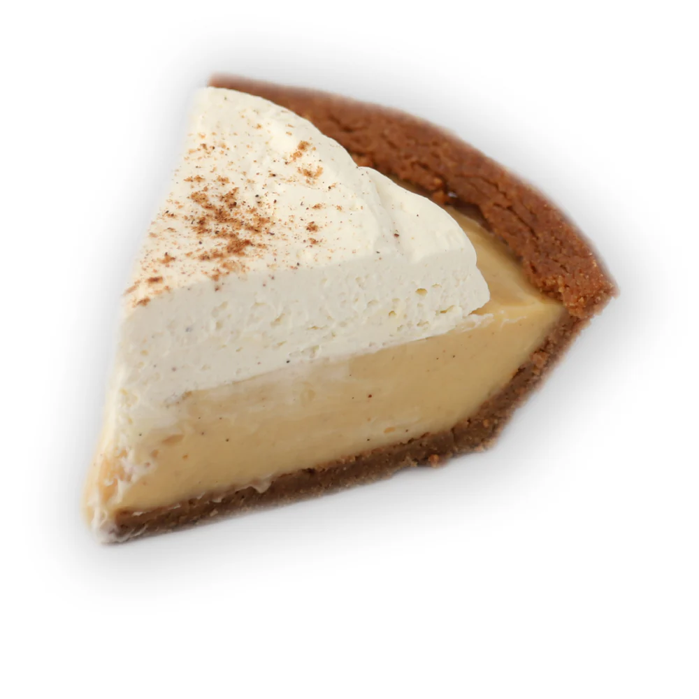 A holiday season favourite! This pie includes a pressed graham crust with a creamy eggnog filling, spiked with rum extract, and topped with fresh whipped cream and grated nutmeg. This just might become part of your holiday tradition!